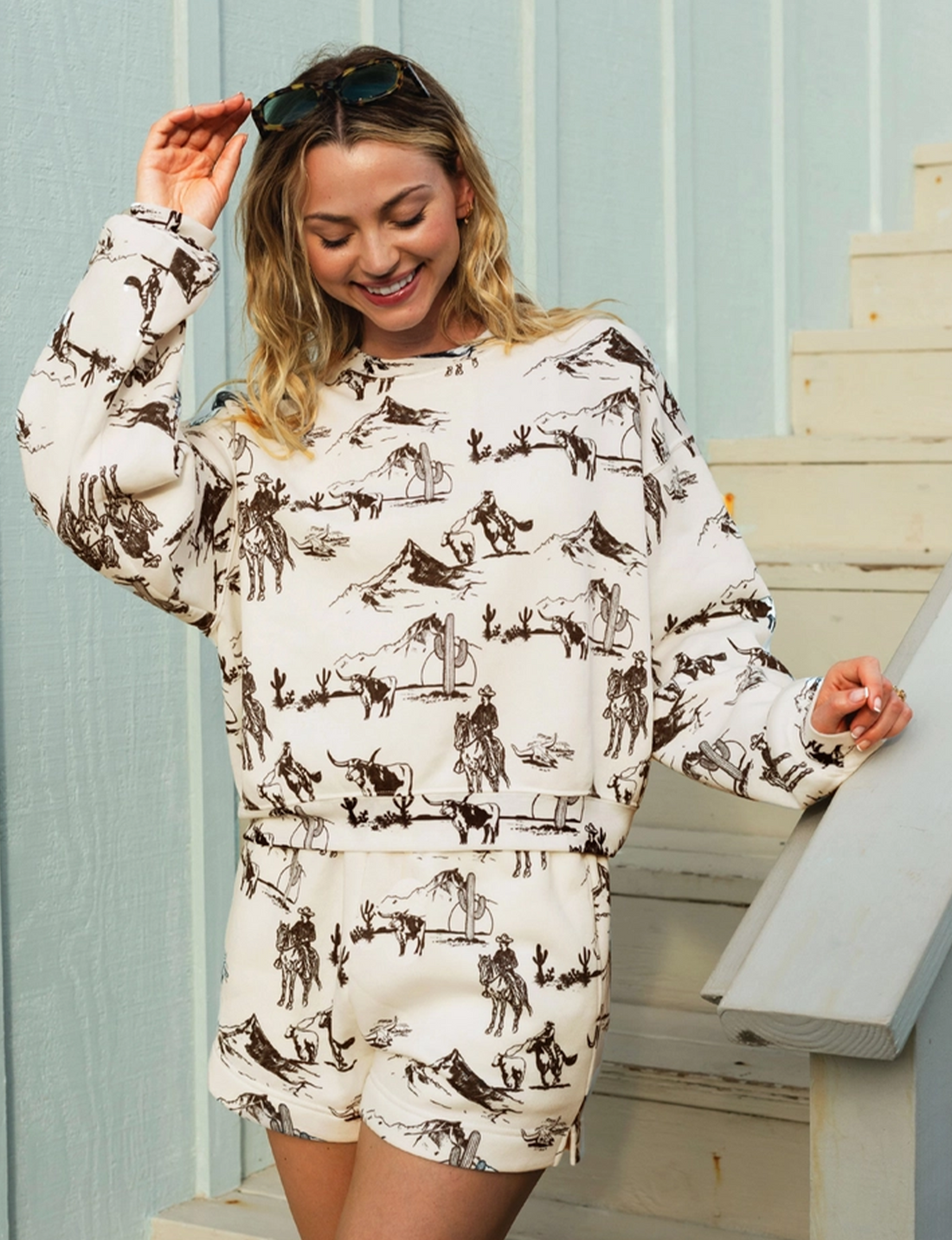 Solid Marshmallow V-Neck Lounge Set, Almond