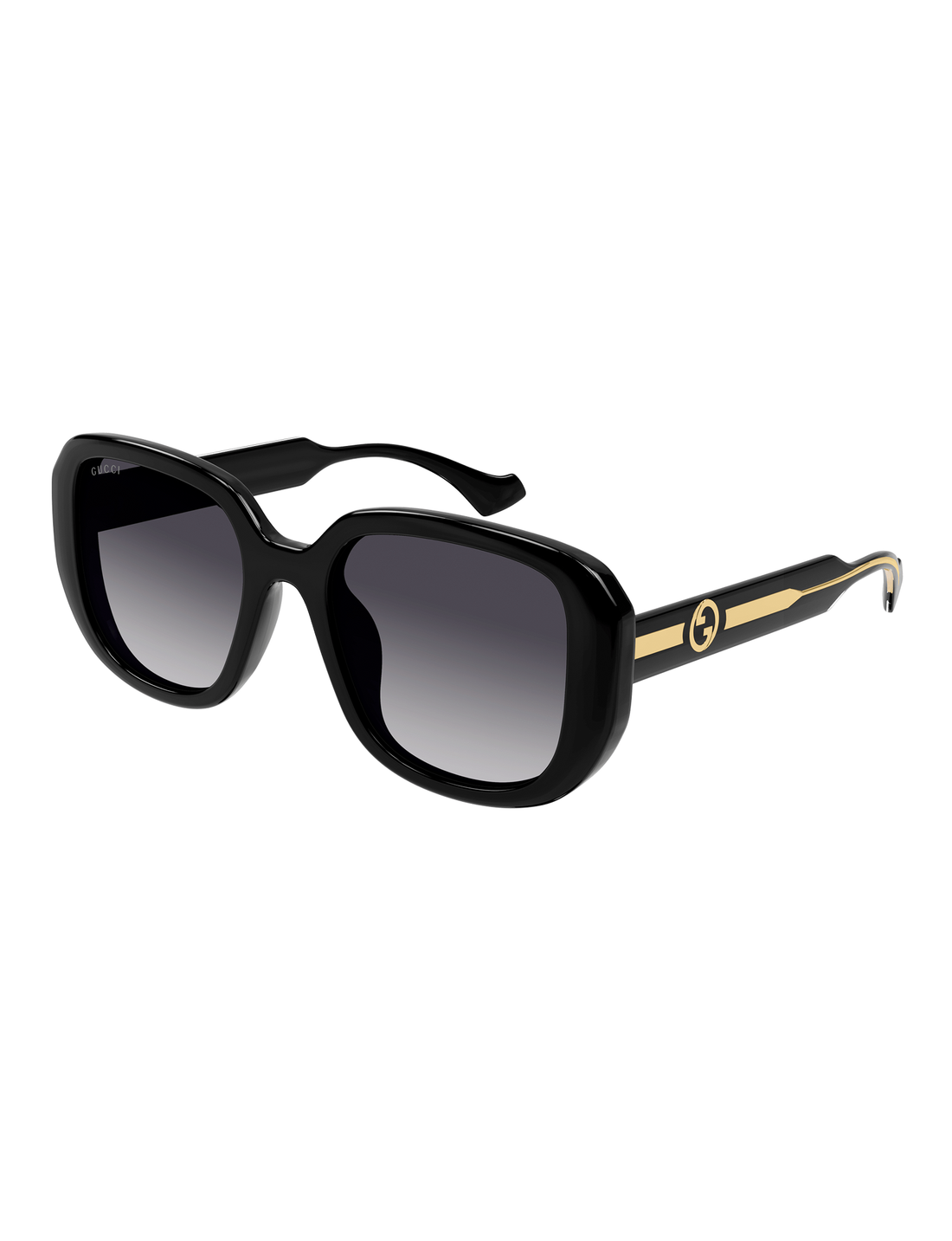 GG0076S-002 Sunglasses, Black/Gold/Grey