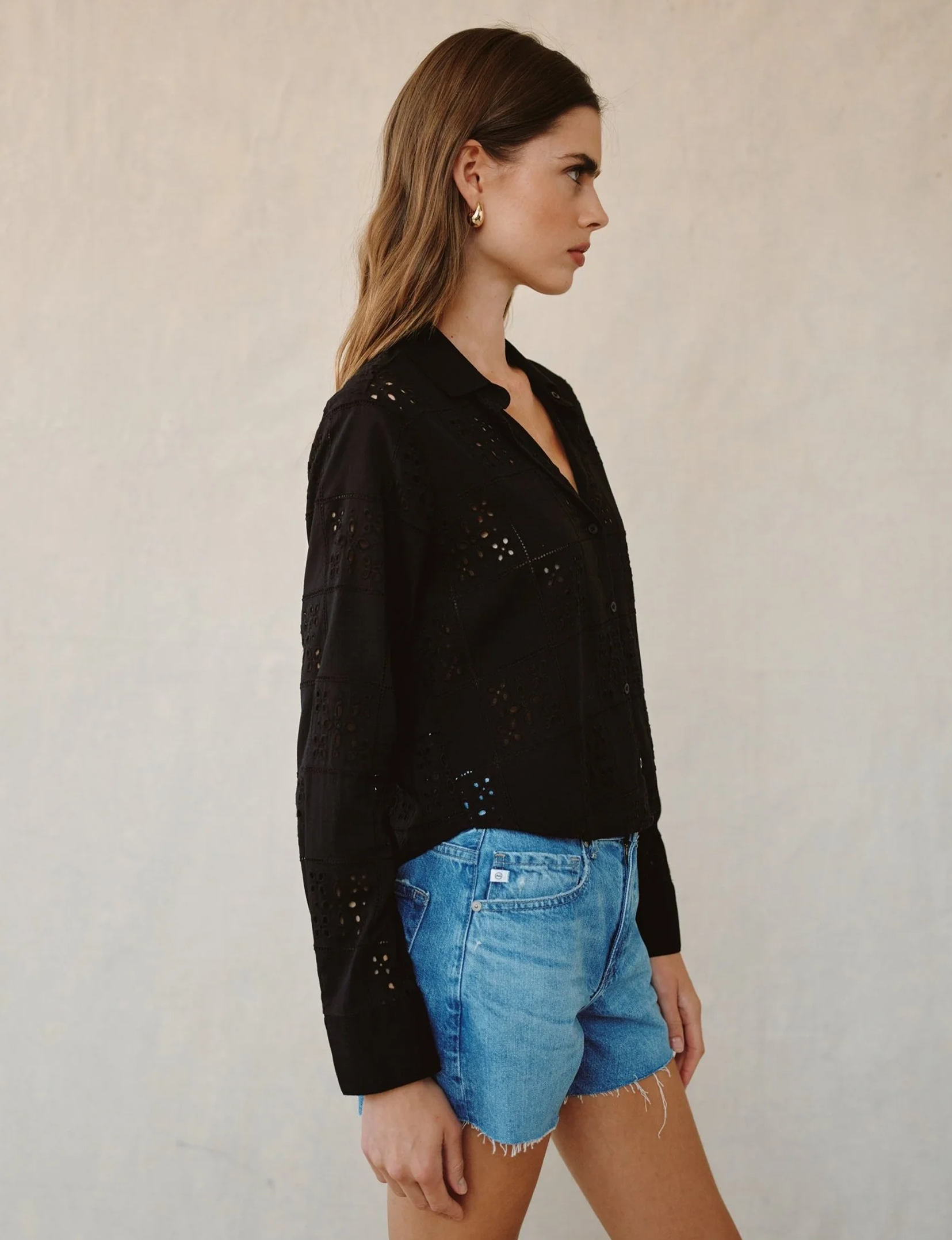 Lightweight and versatile, the Eyelet Embroidery Button Down is a seasonless staple designed to carry you from sunny days into cool evenings.