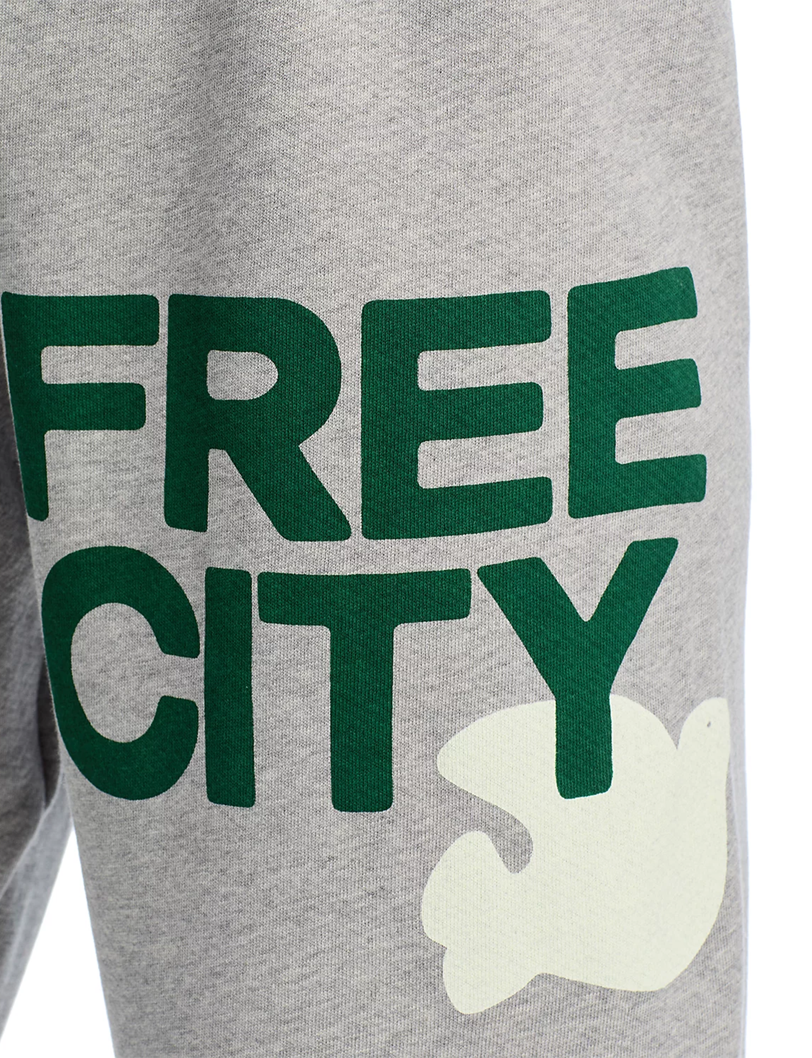 Unisex FLOW sweatpant in surplus with classic "FREECITY" print in army "FREECITYDOVE," covered elastic waist and pull drawcord.