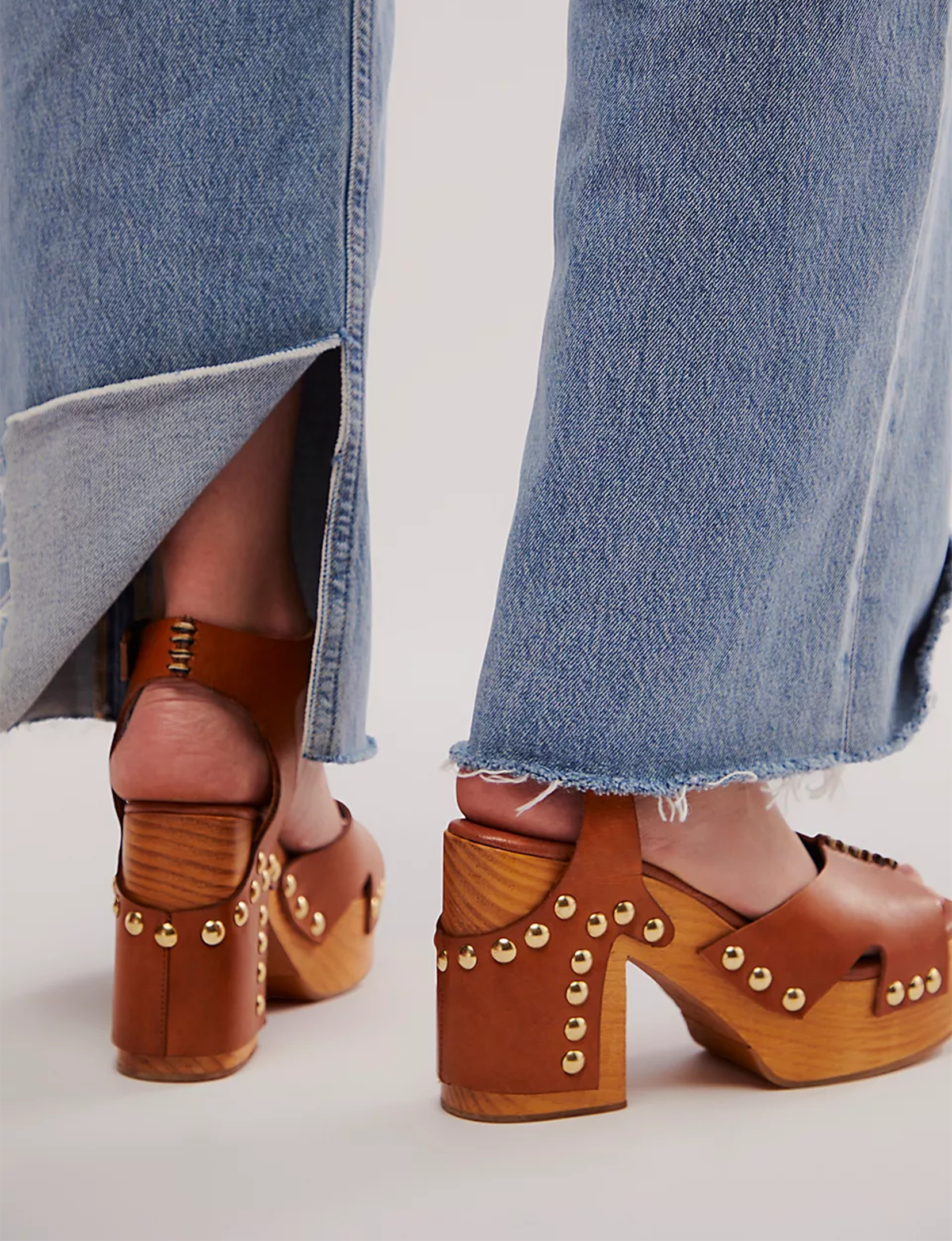 Hand-touched detailing makes these mega-platform clogs extra special, featuring a responsibly-sourced wood sole and stud and seamed accents for a totally head-turning pair.