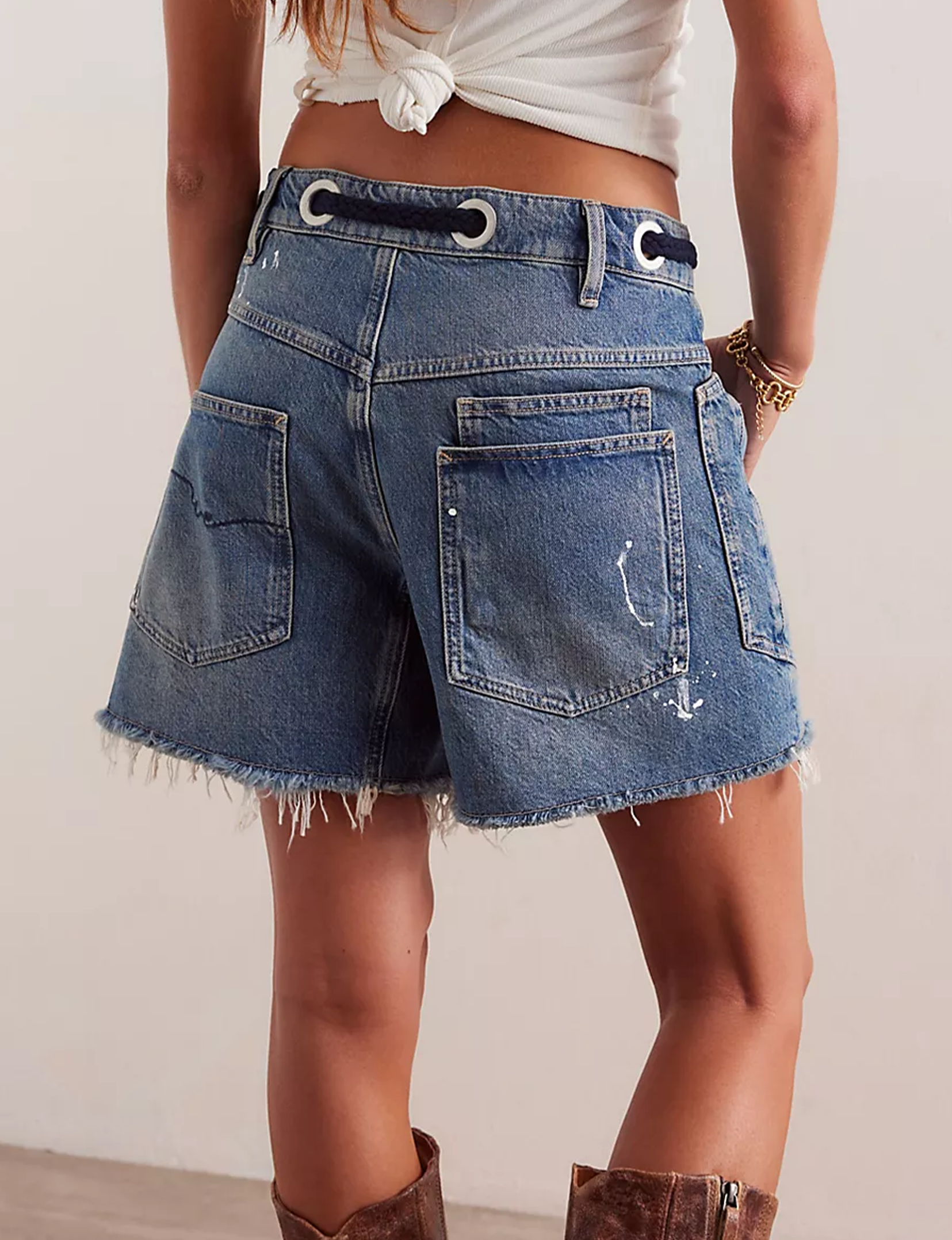 Features: Pull-on design, drawcord waist detail, oversized pouch pockets, raw-edge hem