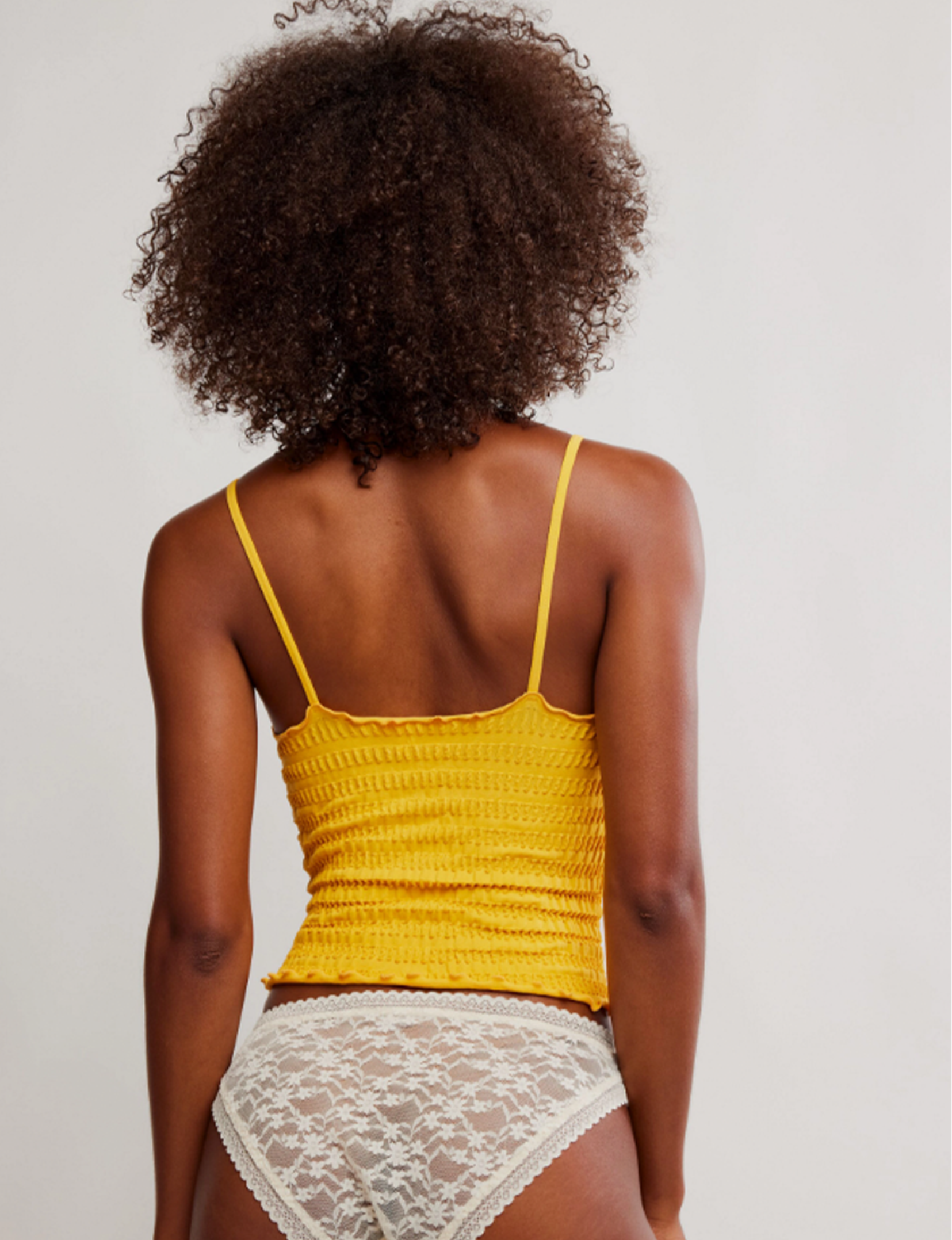 Breathe easy and elevate your classy style wearing the Free People™ Pucker Up Seamless. This top features crew neckline, sleeveless style, classic fit, pull-on style, and allover smocked detailing.