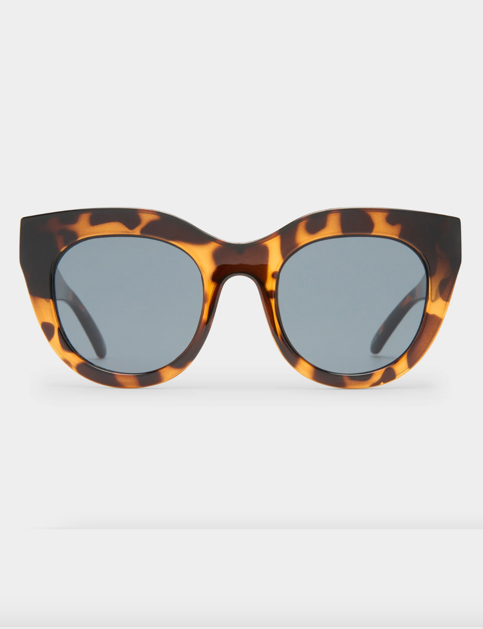 A favorite of Meghan Markle and Olivia Palermo, the AIR HEART silhouette is an iconic Le Specs style. With oversized and dramatic proportions reminiscent of a cat eye, the style is designed with a thick semi-translucent tan frame and luxurious metal top bar inlay, then fitted with premium zero base smoke flat lenses. The perfect statement sunglass to suit all face shapes.
