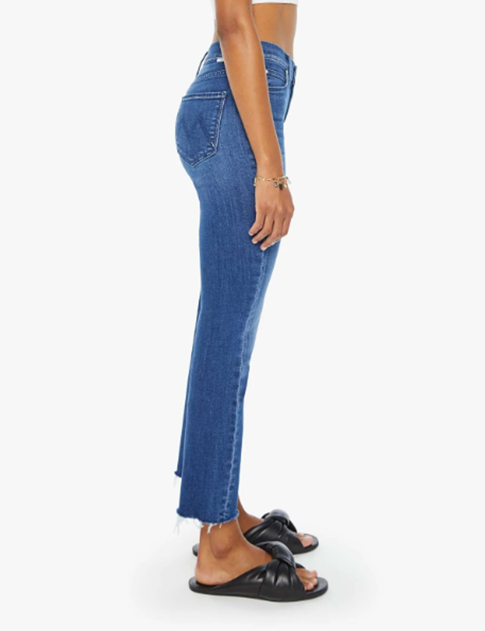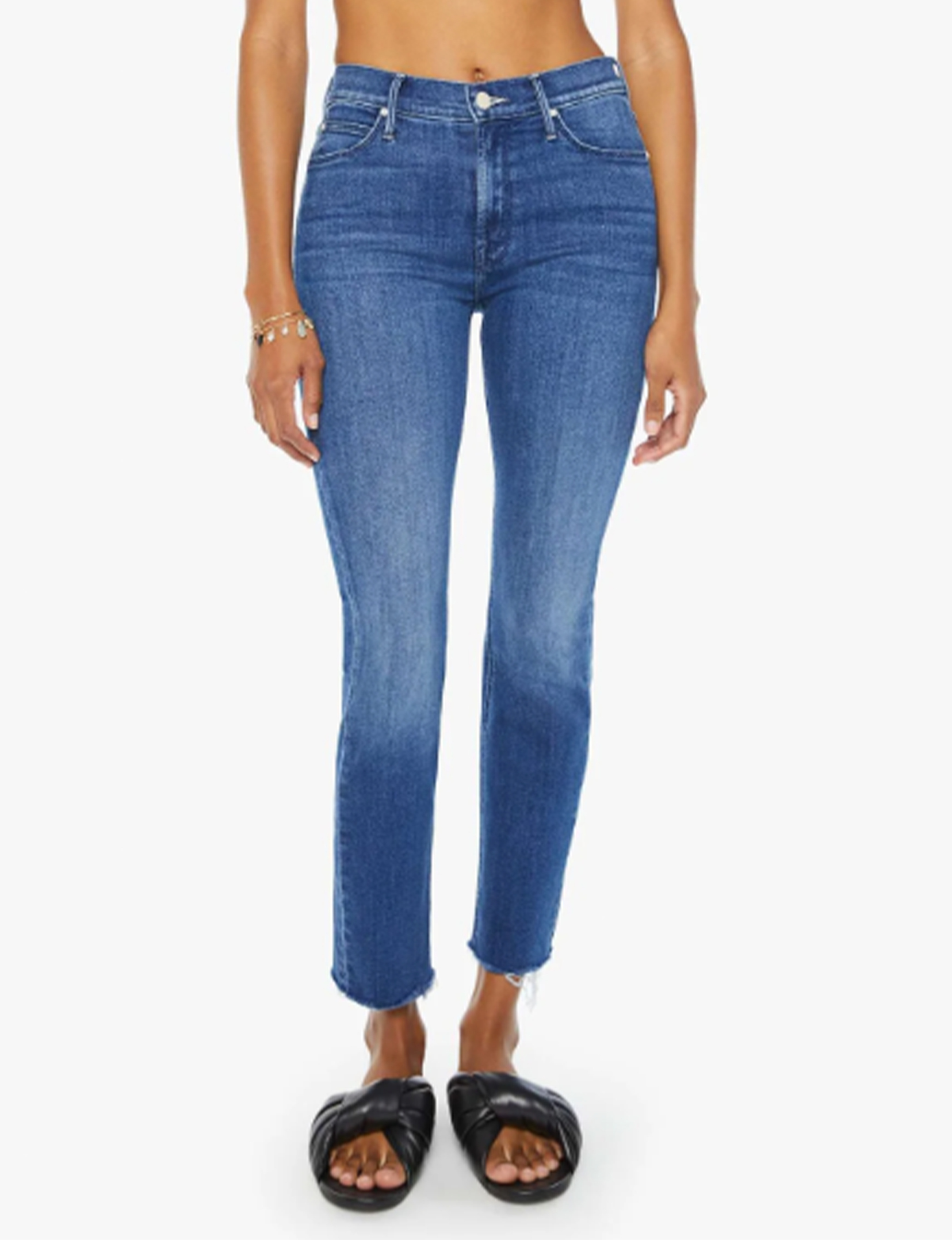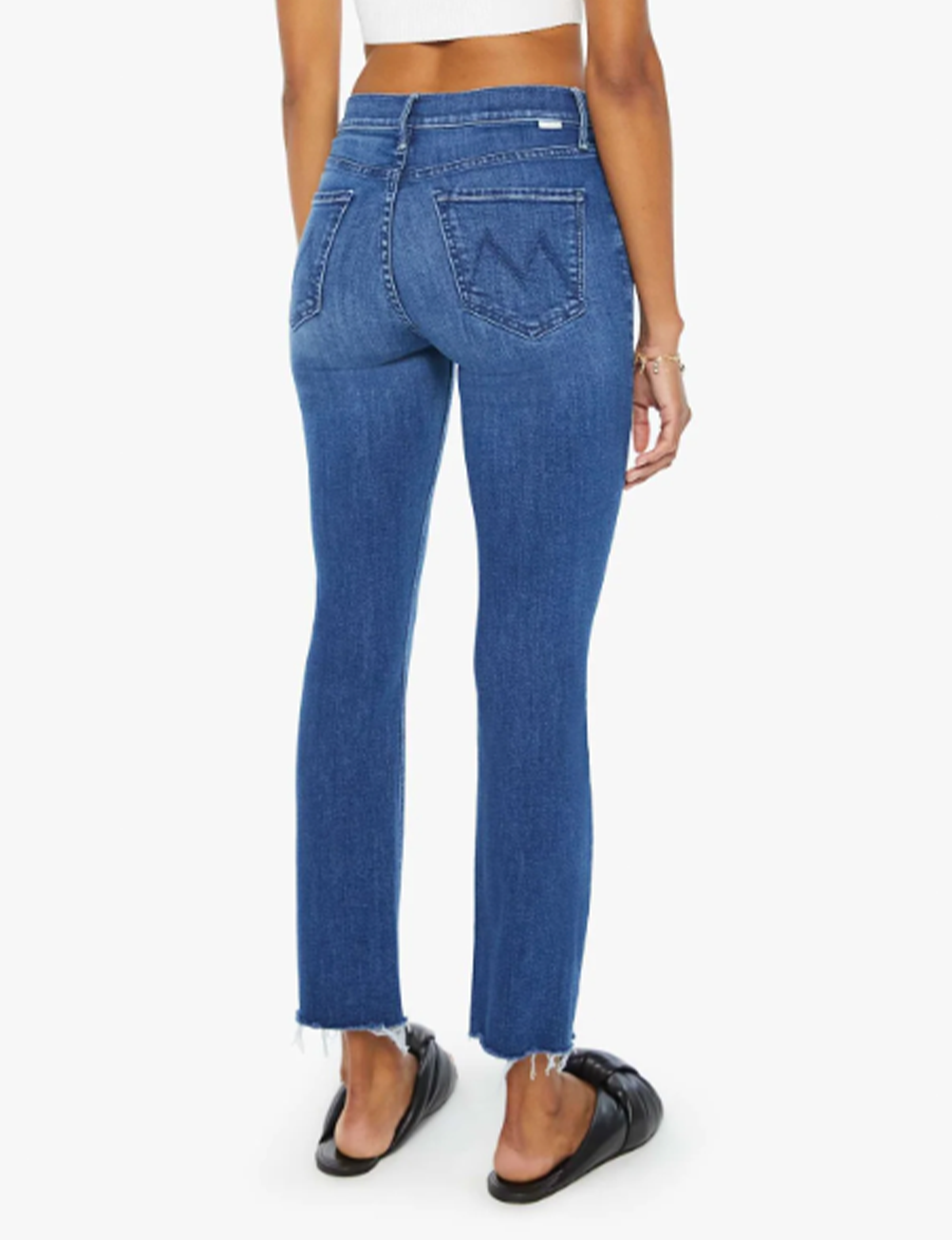 Mid-rise straight leg hits at the ankle with a frayed hem. Cut from stretch denim, Nothing Between Us is a mid-blue wash with subtle whiskering and fading.