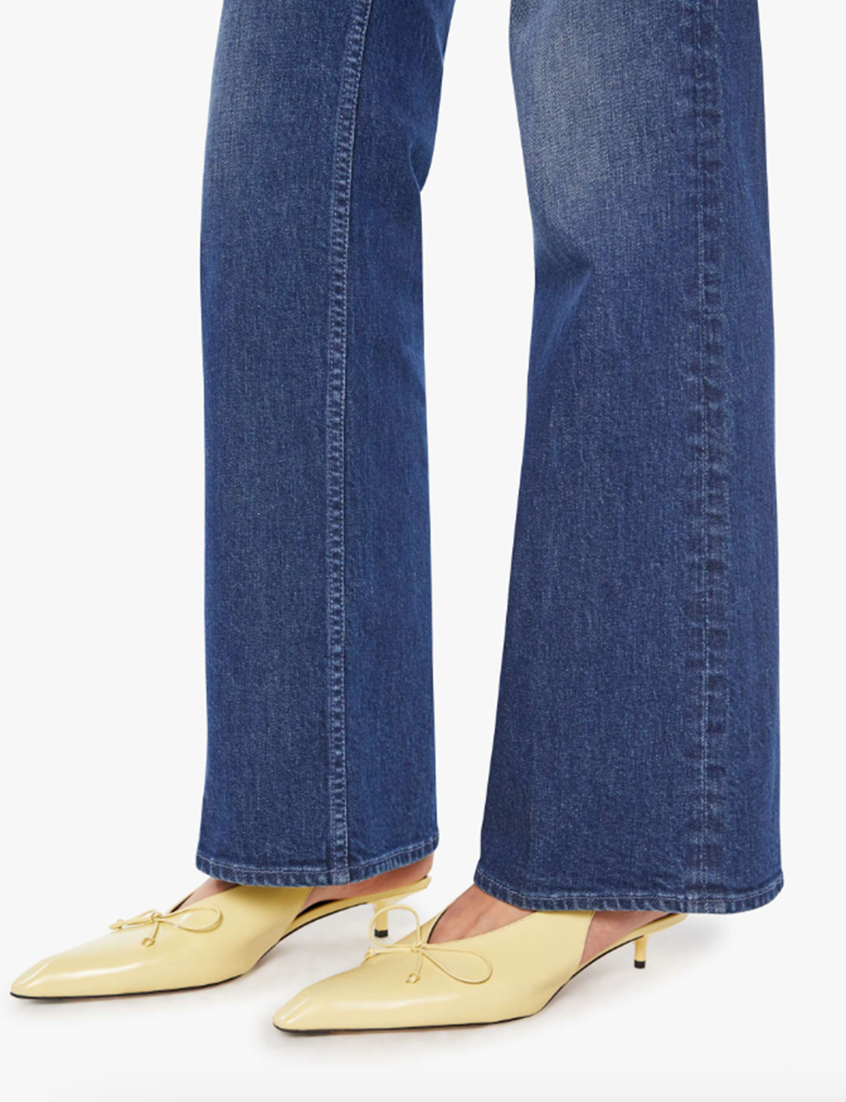 A high-rise bootcut with a zip fly, looser leg and a long 32-inch inseam with a clean hem. Made from semi-rigid SUPERIOR denim, Perfectly Imperfect is a dark blue with whiskering and fading at the knees.