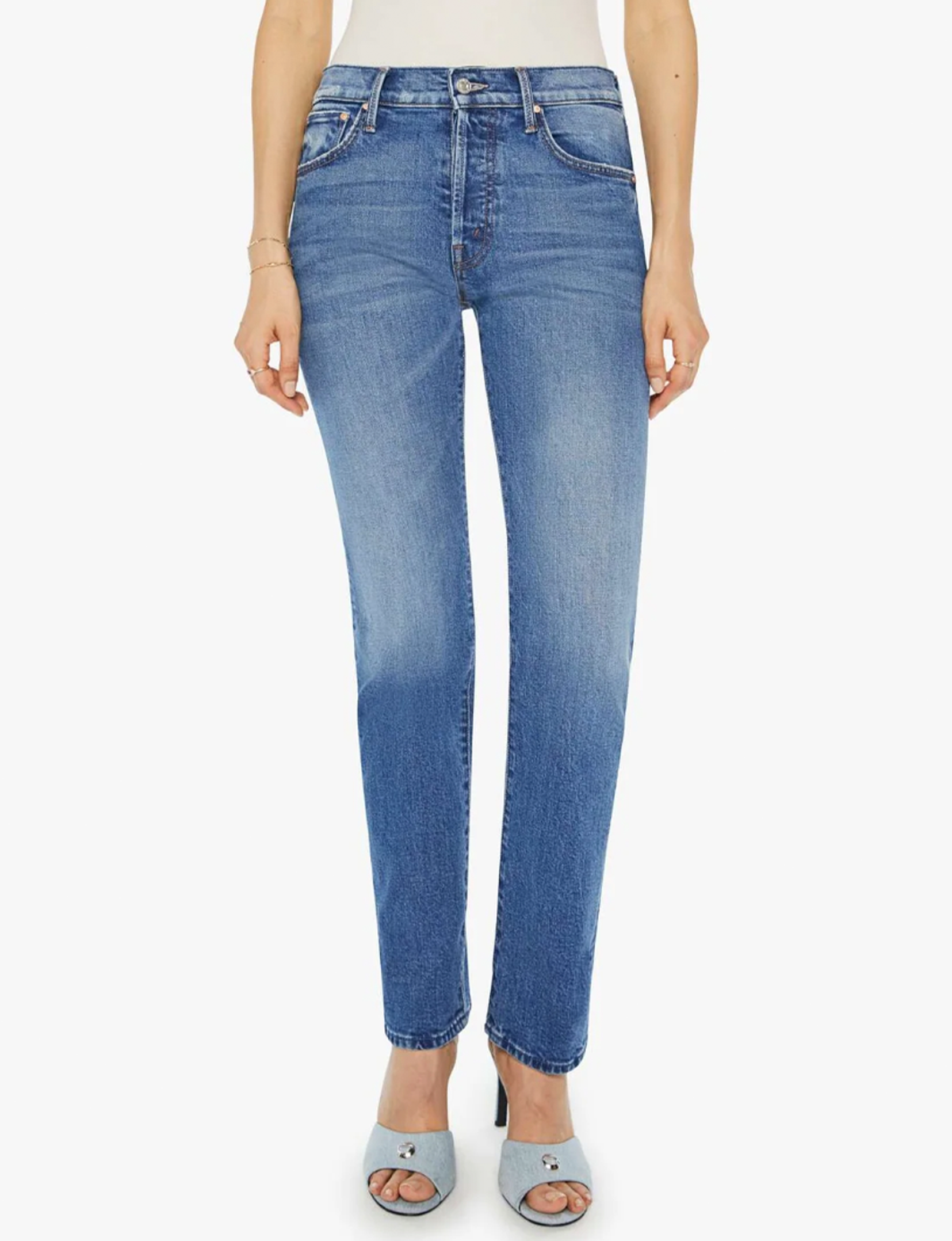 These jeans are rigid and take time to break in. MOTHER says patience is a virtue.