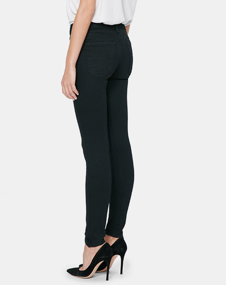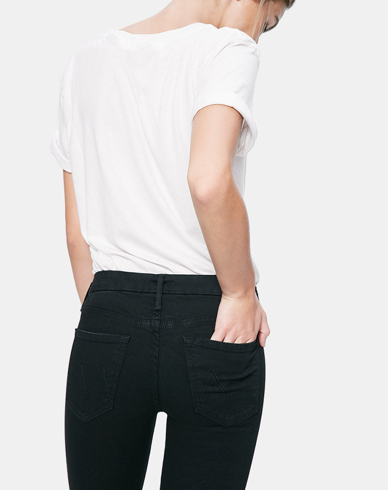 Mother's classic mid rise, skinny jean in a form fitting silhouette guaranteed to turn heads. Not Guilty is a classic black denim wash.