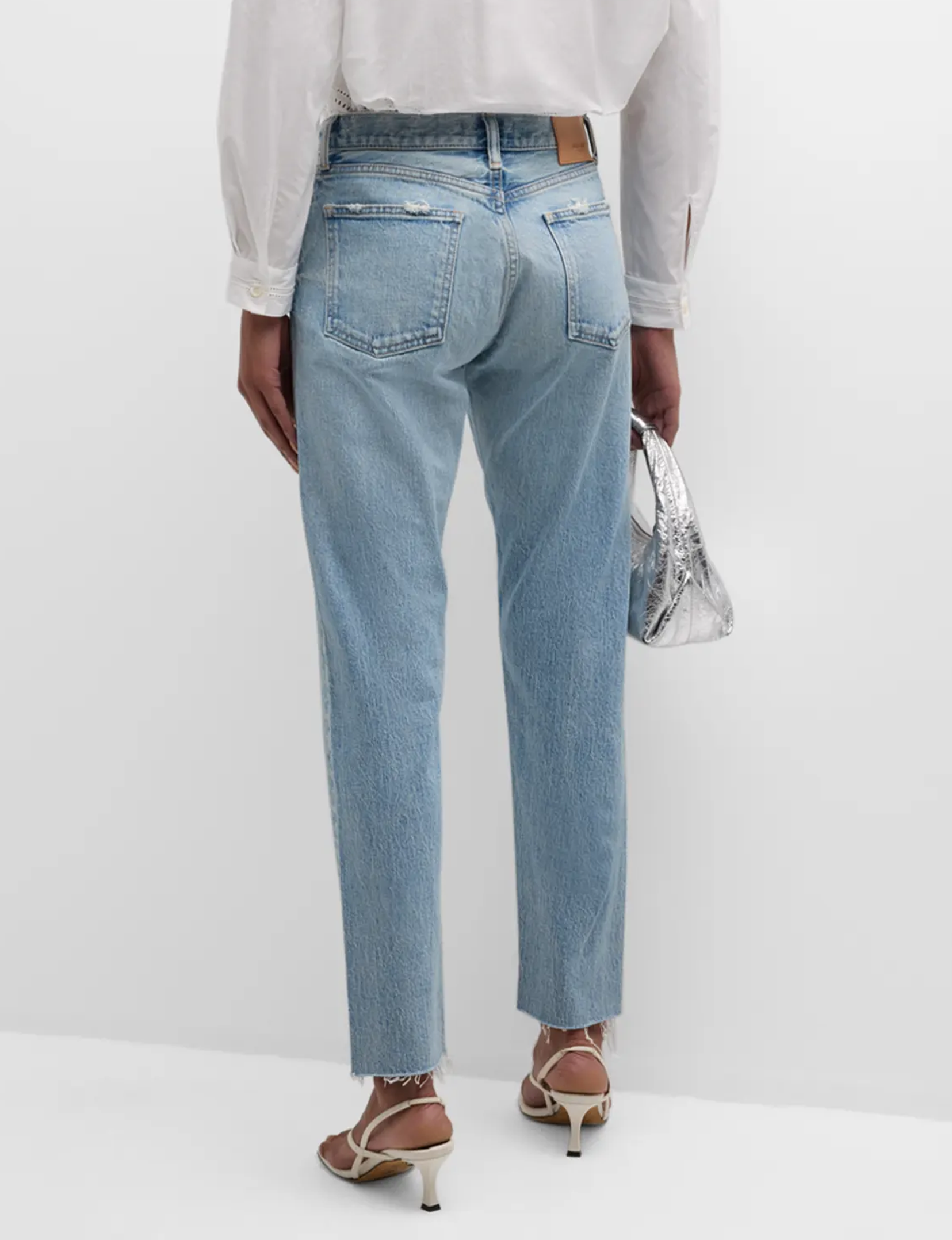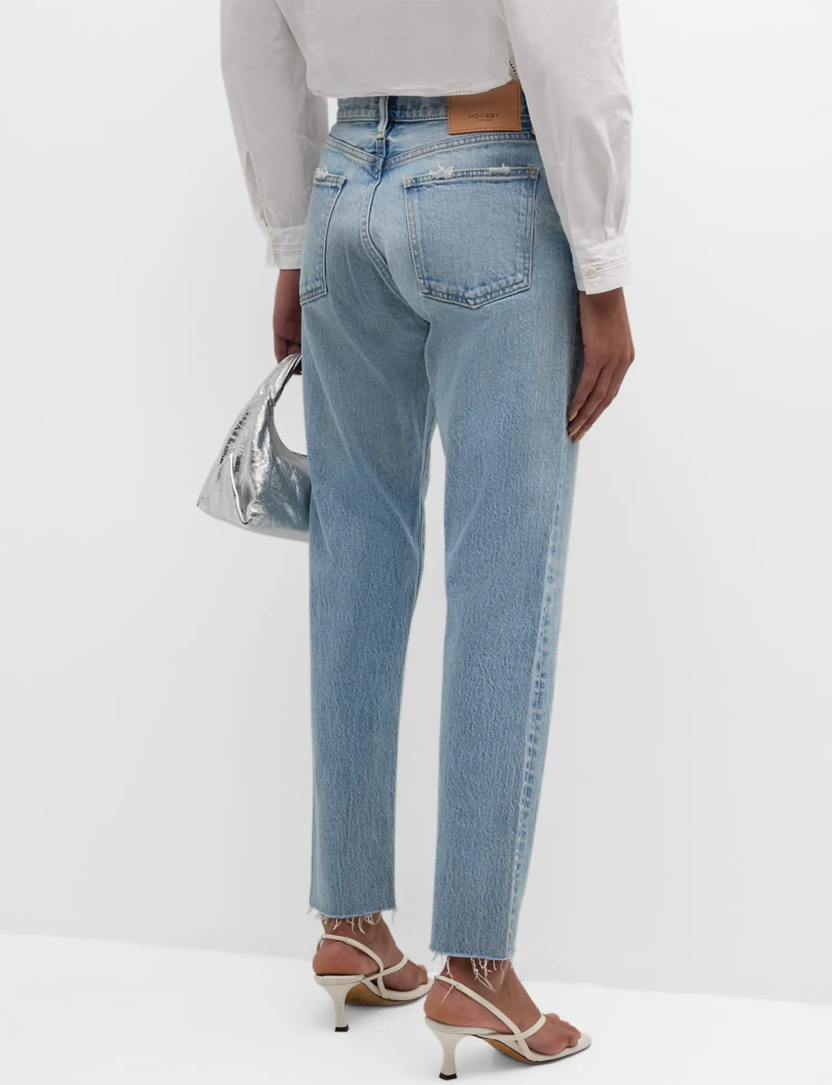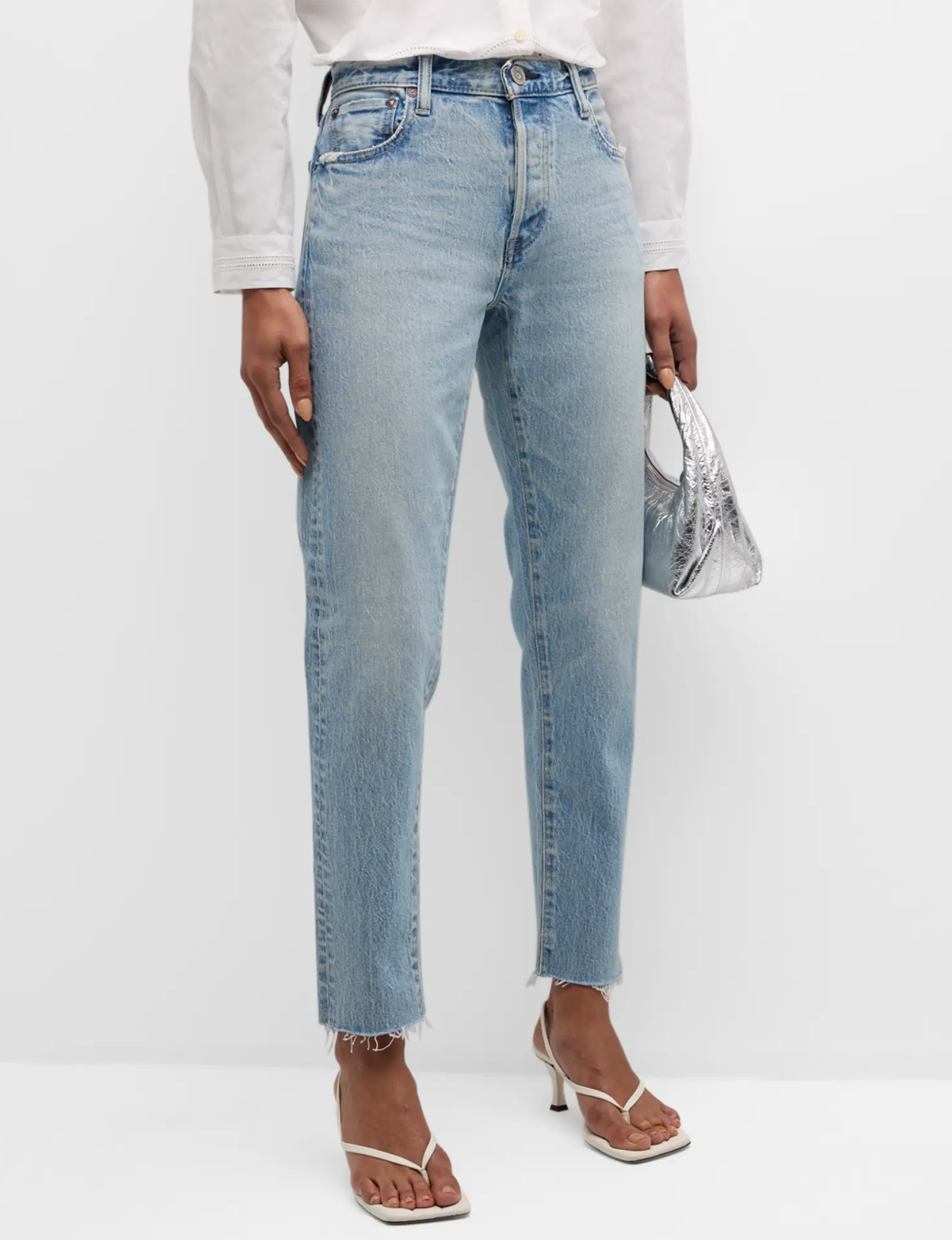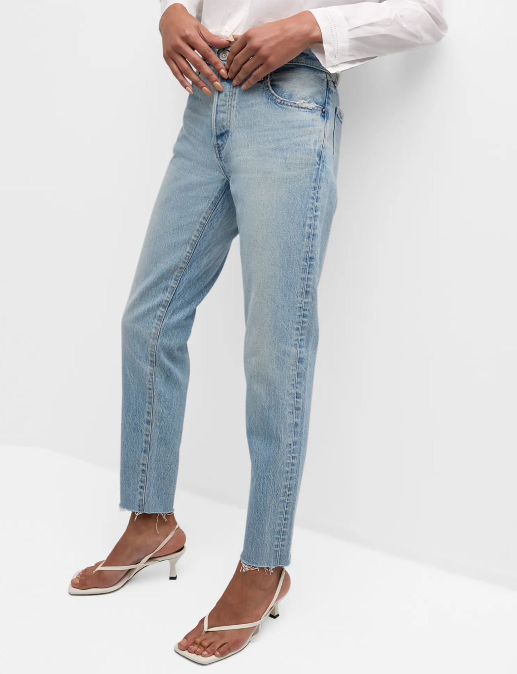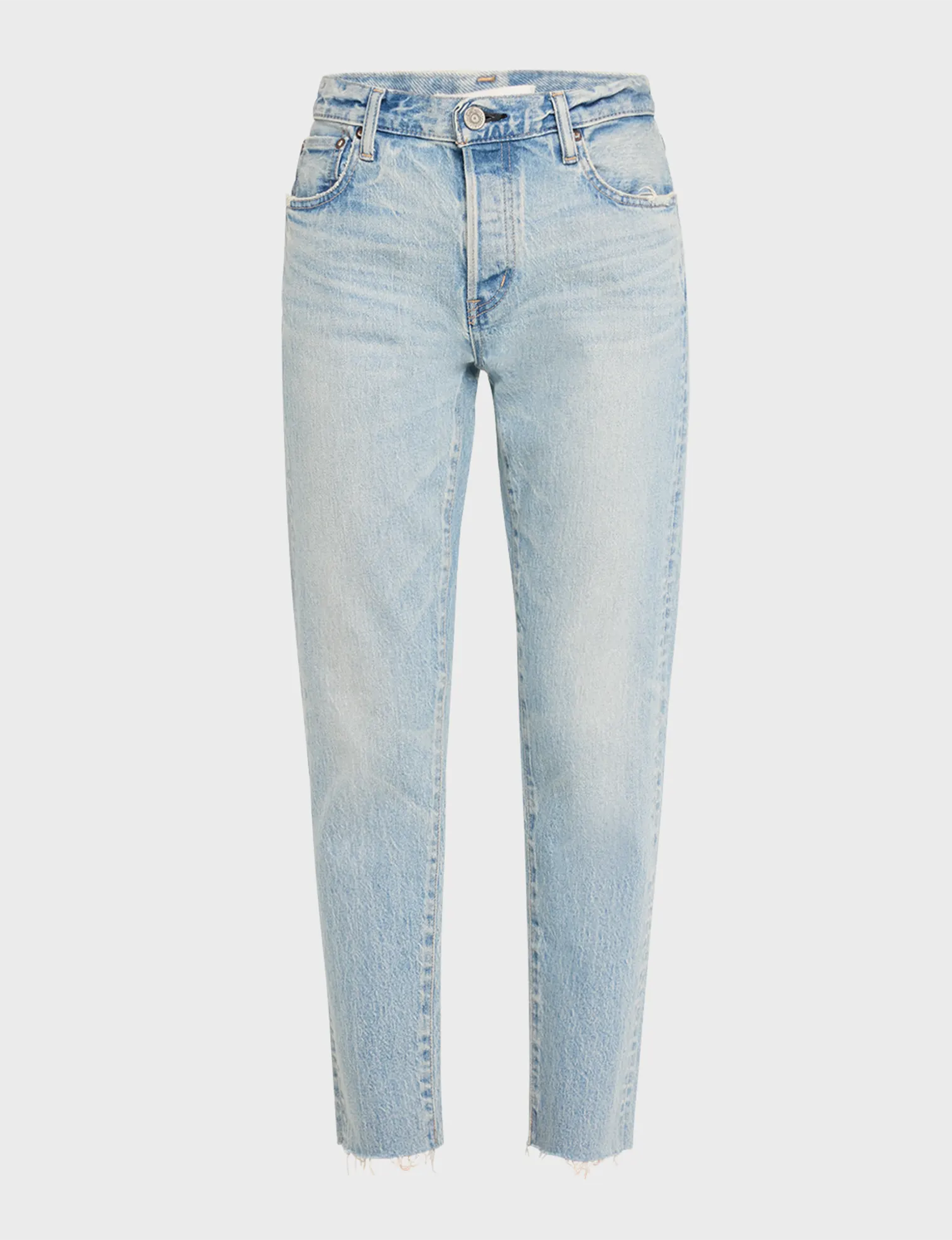 MOUSSY VINTAGE "Montura" straight-leg jeans featuring a raw hem in faded light-wash denim