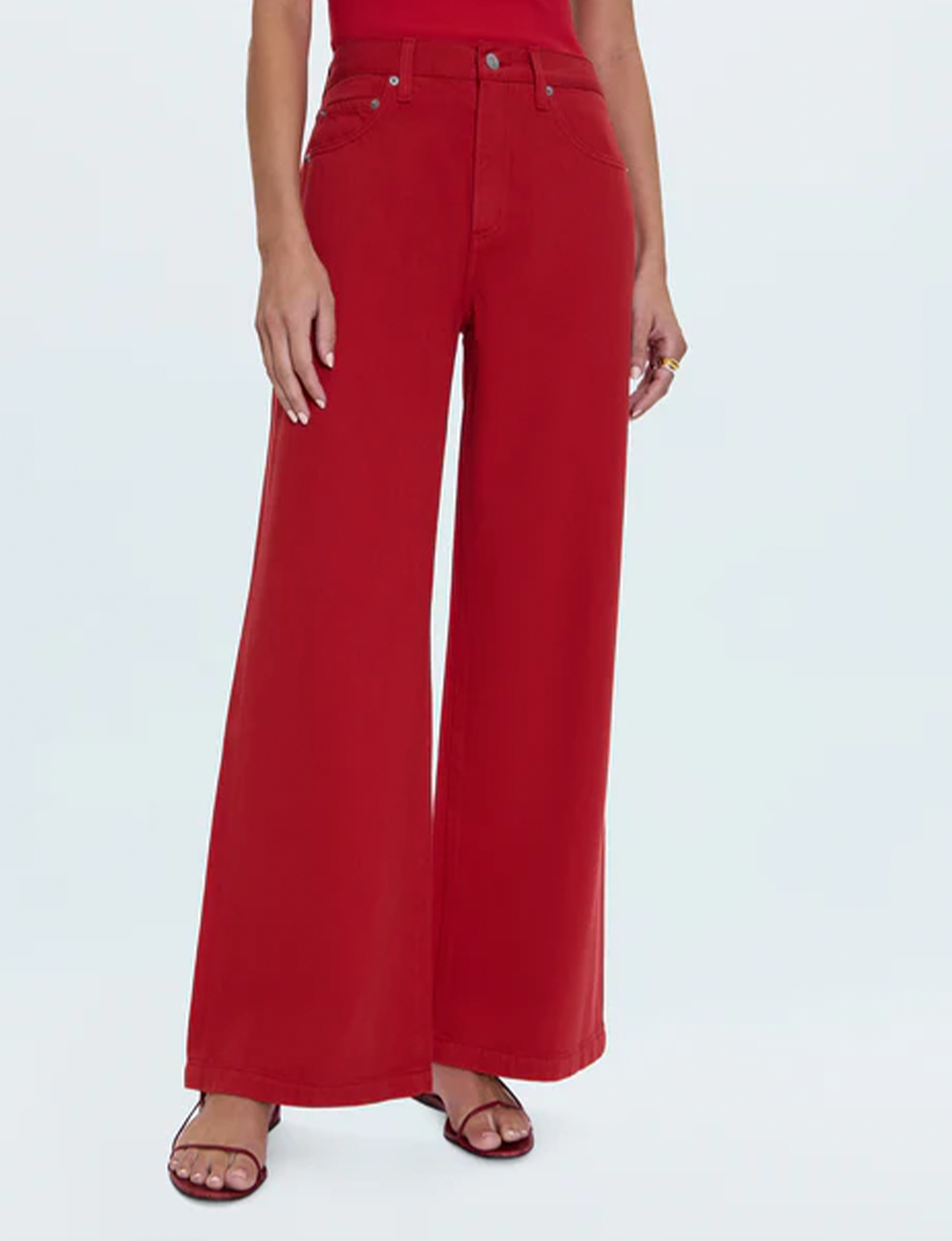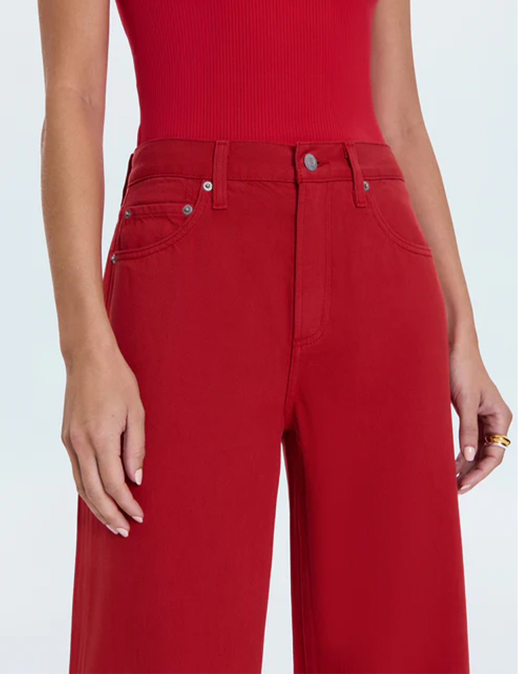 The summer it-girl jean. Jadyn is designed to sit low on the hips, with a relaxed palazzo leg silhouette. Crafted from a lightweight rigid denim without stretch that holds it shape.
