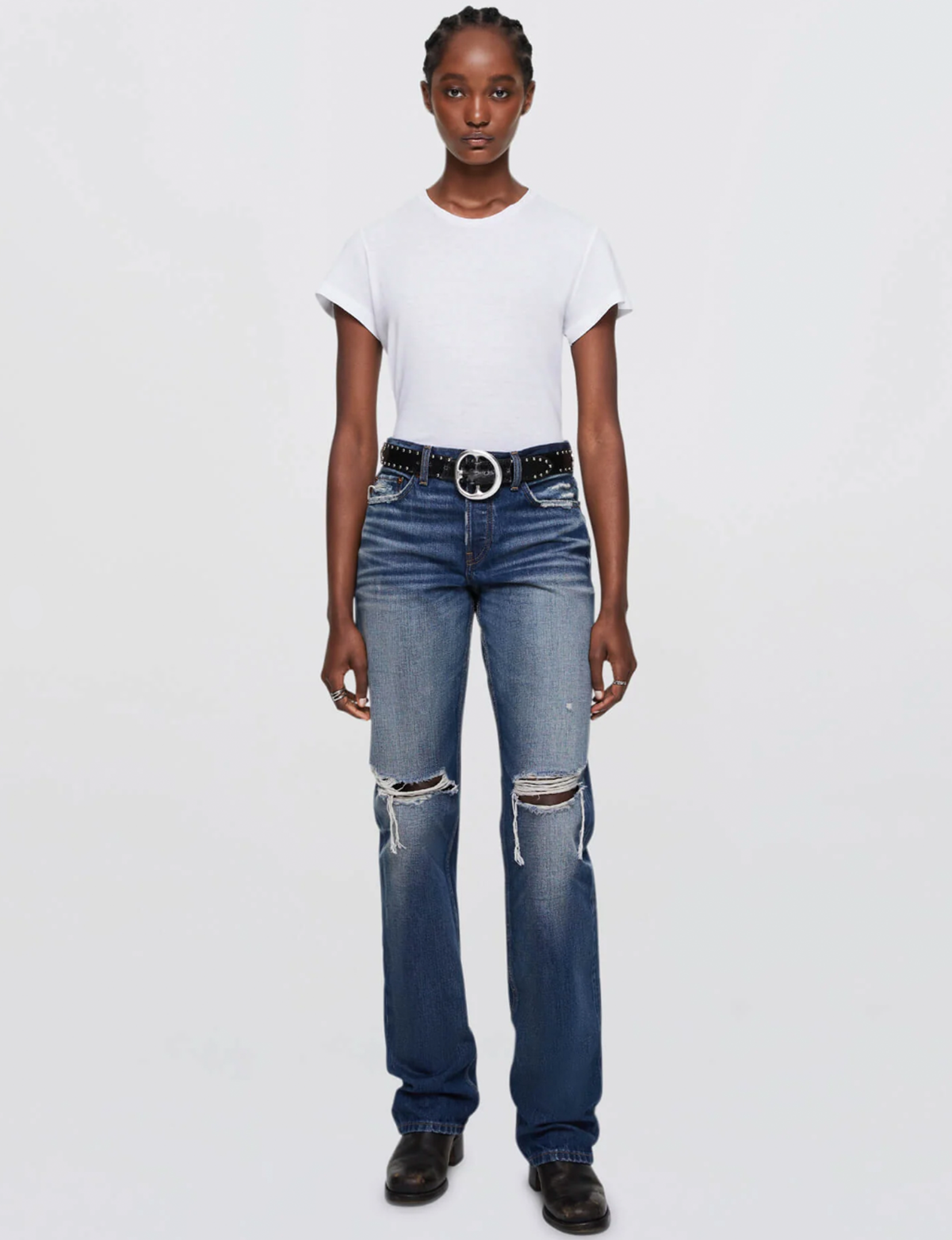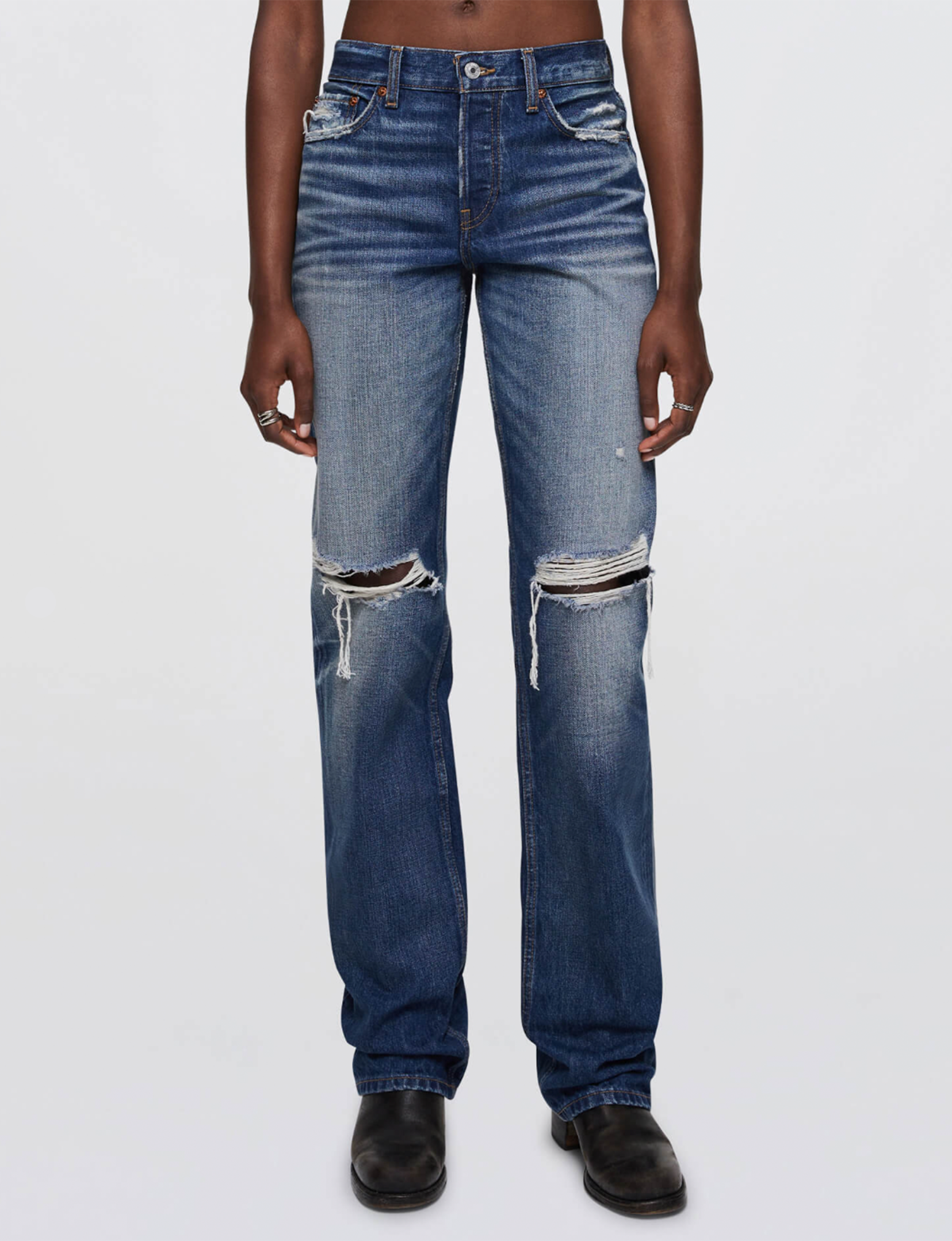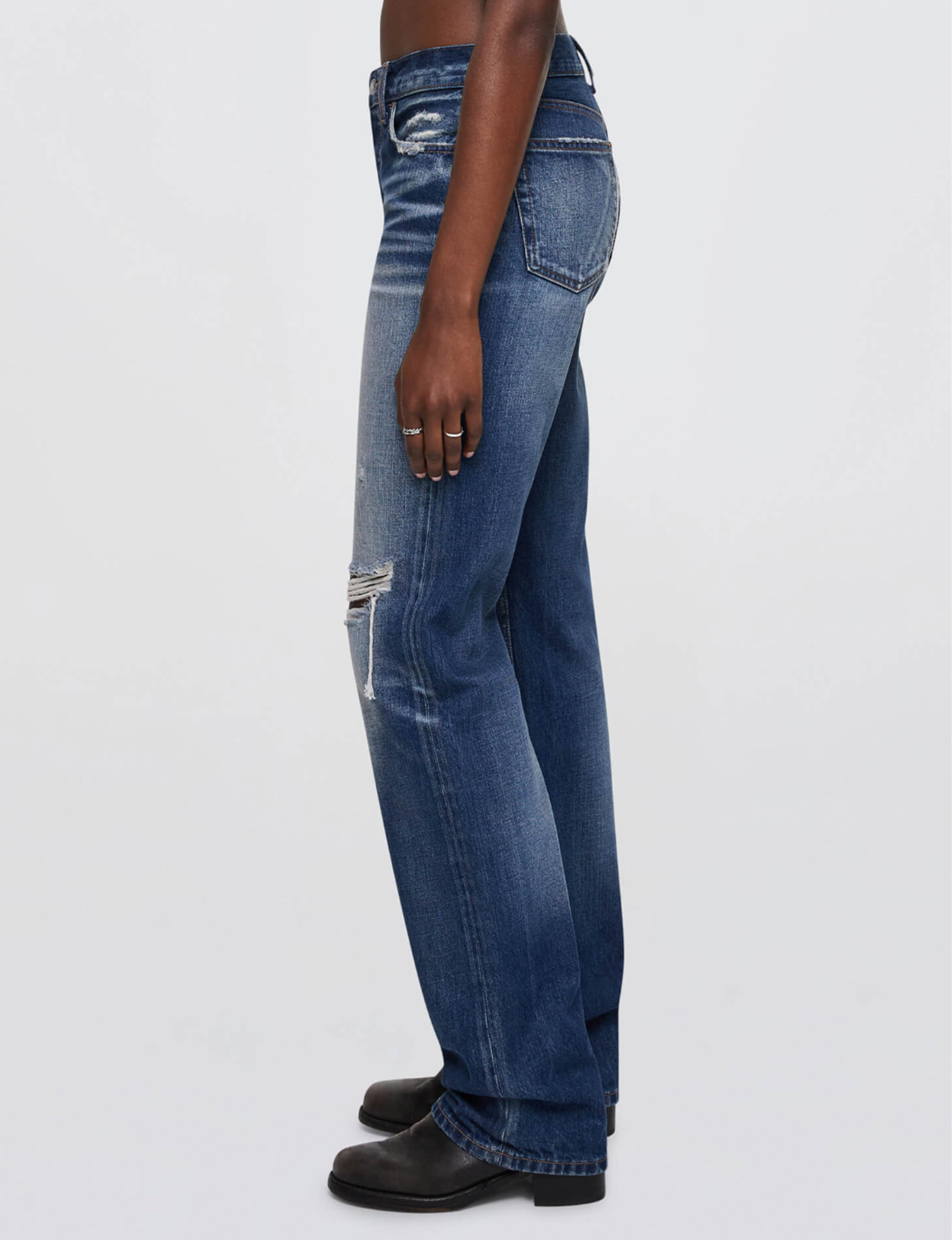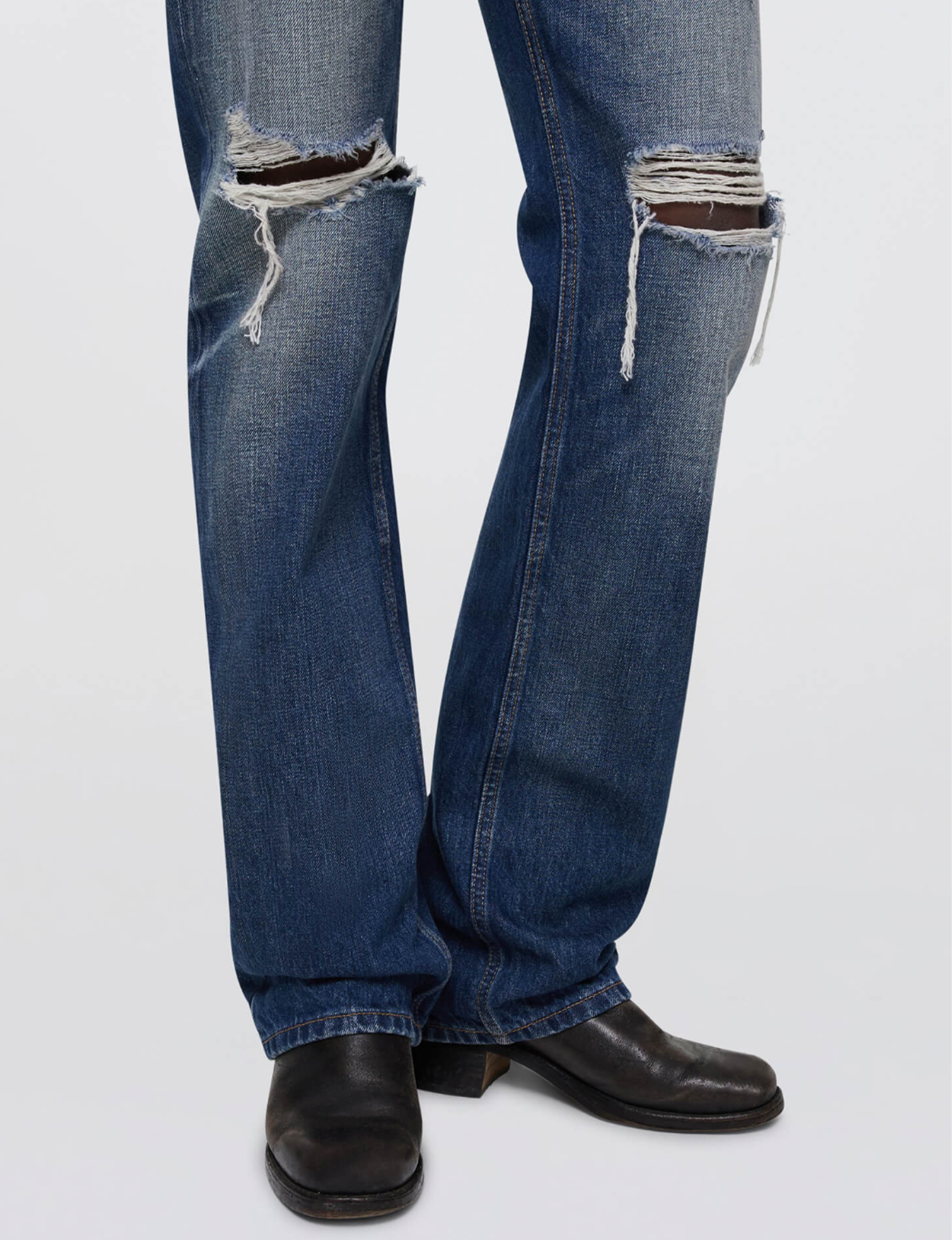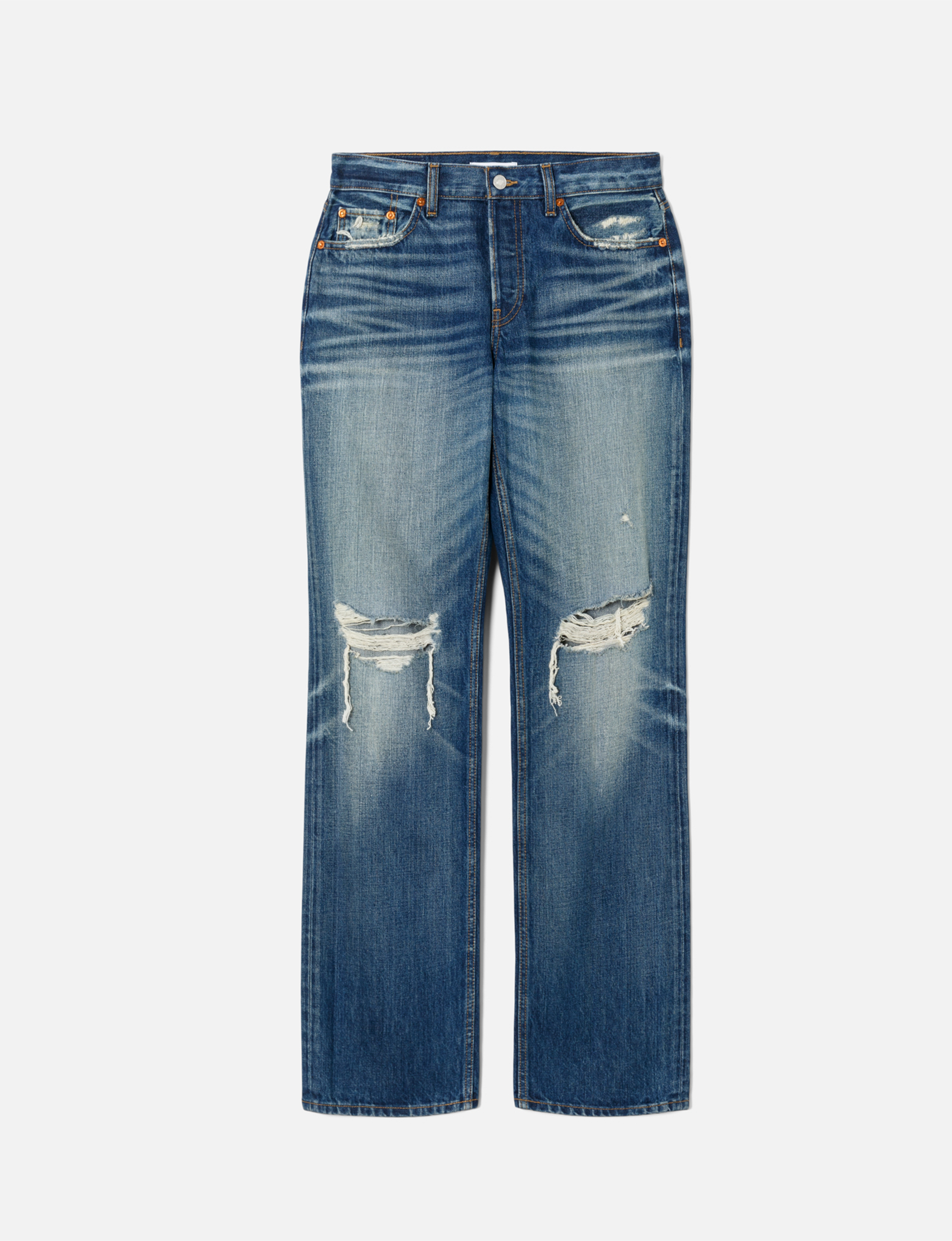 Re/Done Easy Straight Leg in Indigo Grind Destroy.