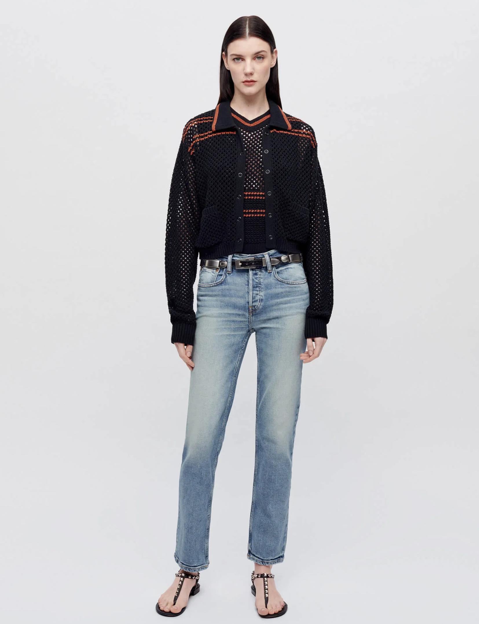 The Mid Rise Stove Pipe in Bella Rosa is an update to our iconic straight leg jean with cropped inseam. Features a whickered vintage-inspired wash, a rosey-brown tine, eco-stretch denim and a classic button fly.